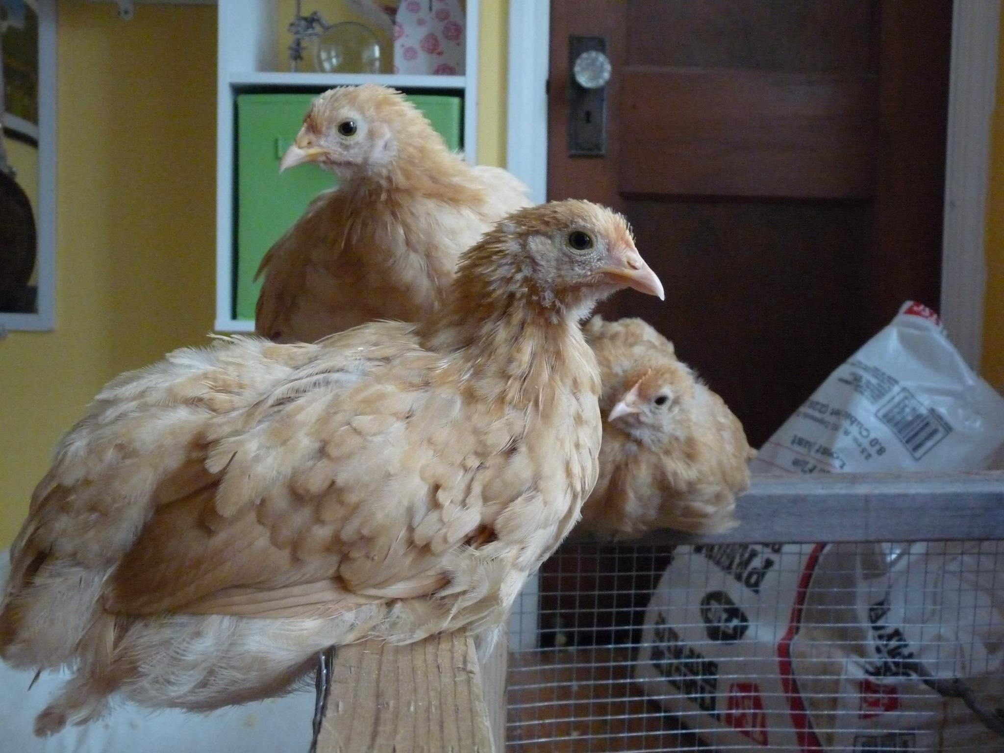 The chicks were acquired March 18th, and have been staying in my house in a brooder box. I didn’t get them at the tiny fluffball stage- they had a few “big girl” feathers, and were likely about 3 weeks old. They’re growing FAST, which means that I need to get them out of the brooder box and into the coop as soon as possible. It’s been a madhouse trying to get everything built and installed, but the end is in sight and we should have it ready for the chicks this weekend.
