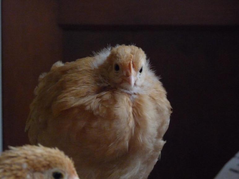 Little Girl still has some of her head fluff hanging on, despite looking like a mini adult everywhere else. So cute! I love that she looks like a painting in this picture below. Part of me will miss having these little girls in the house, despite being relieved that I won’t have to clean up the wood shavings they kick out of their brooder box.