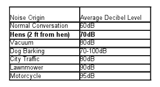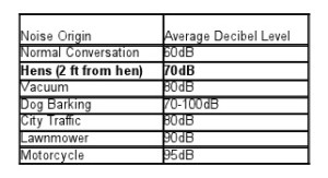 That’s the thing about the dB- that’s the average 2 ft away from them when they squawk (like when they lay an egg or someone has caught a bug and everyone else is jealous), not when they’re chattering and walking around with eachother (which is probably a lot closer to 50dB). And 2 ft away is soooo close, way closer than my house or patio where I spend the majority of my time.