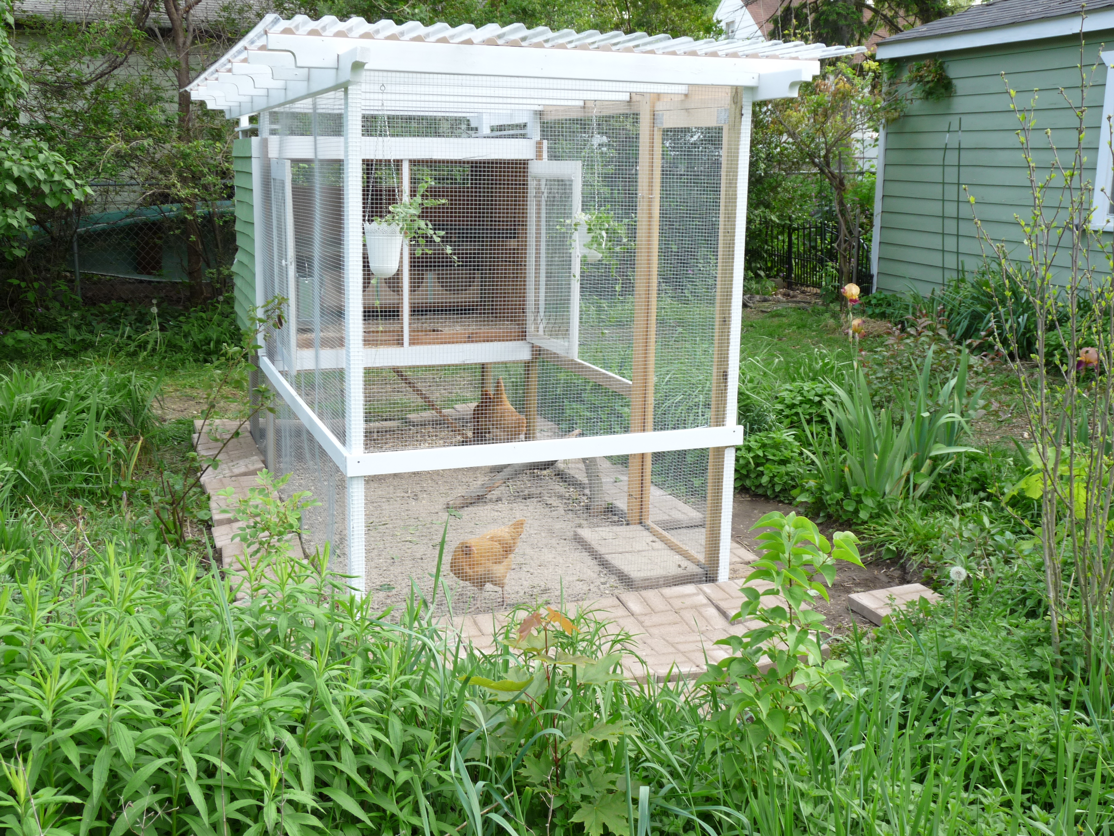 2.) We had to be able to easily clean the run and under the elevated coop. Again, this meant we needed to have something tall enough that I could rake under it, and the run had to be a reasonable height for us to walk around in.