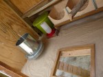 - Add your substrate back to the coop- we use sand in the summer and wood shavings in the winter. The sand is wonderul to keep things clean, cool, and dry. The wood shavings are a great insulator for winter time, and it smells pretty nice- we use the shavings that are available in pet stores for hamsters/guinea pigs. Never cedar! We tend to use shavings for the nesting boxes year round.